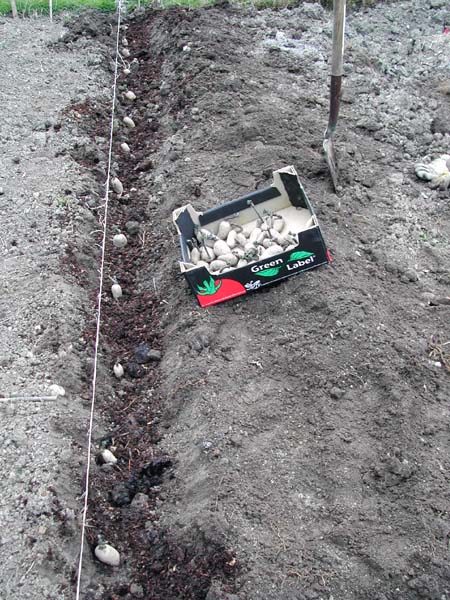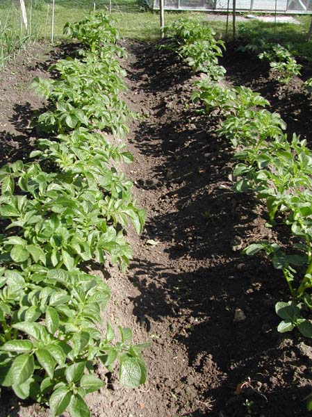 We grow a few rows of early potatoes. They taste great when they are eaten straight from the garden.
