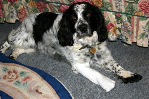 Zippy is a frequent guest round the corner too, and also gets spoilt, but he has had a difficult year. He has slowed down a lot and a grass seed in his foot meant an operation in the summer. This Autumn the vets have confirmed arthritis in his hips and back legs and he has had infections at both ends! On top of this we were told to cut his food down because he was overweight. |