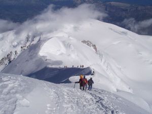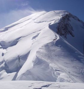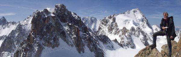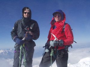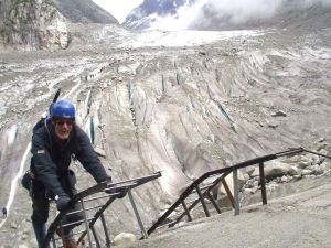 | Going down onto the Mere du Glace to practice ice climbing | On the Mt Blanc summit with Bruce (4807m) |