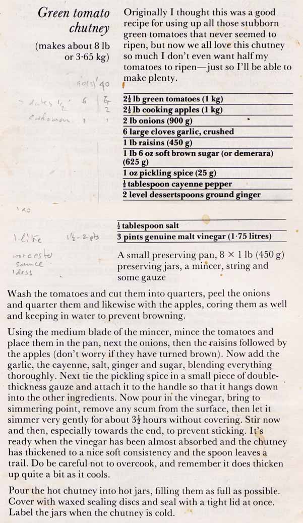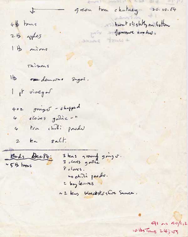 the season, hence Green Tomato Chutney was the first chutney made. The earliest