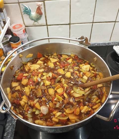 2025 16 September Lots of apples this year so I made a full batch of apple chutney to the usual recipe (Bramleys) Apple Chutney Nearly 10 jars of good looking chutney