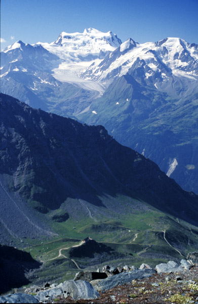 to the Grand Combin and Mt Blanc. Even better views from the top