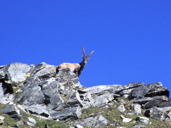of Mt Gele (3022m) with an Ibex and lots of wild flowers on the