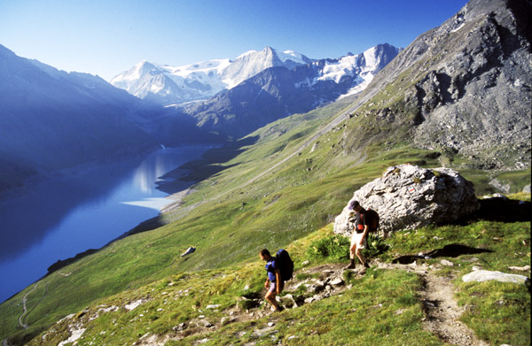ascent on loose scree to the Col du Reidmatten (2,919 m.). Finally,