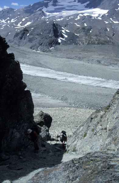 harder climb to the Col du Reidmatten, steep and lots of scree